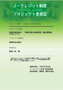 として申請を行い、この度、J-クレジット制度のプロジェクトに登録ができました。